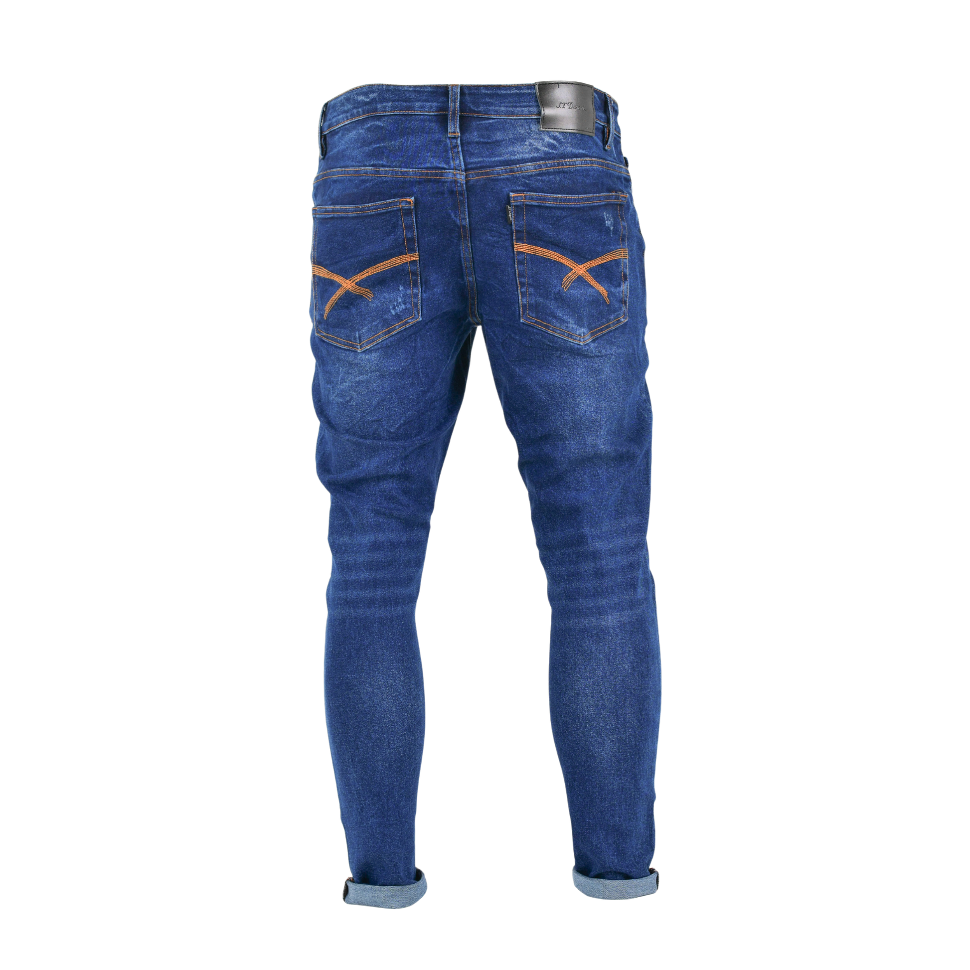Meet the Classic Indigo Tapered Denim — a timeless essential crafted for the modern man. These jeans feature a deep indigo wash with subtle fading and light distress accents that add character without overdoing it. The sleek tapered cut delivers a clean, structured silhouette, perfect for both street and smart-casual wear. Highlighted with distinctive crossed back-pocket stitching and a button-fly closure, this denim offers both style and durability.