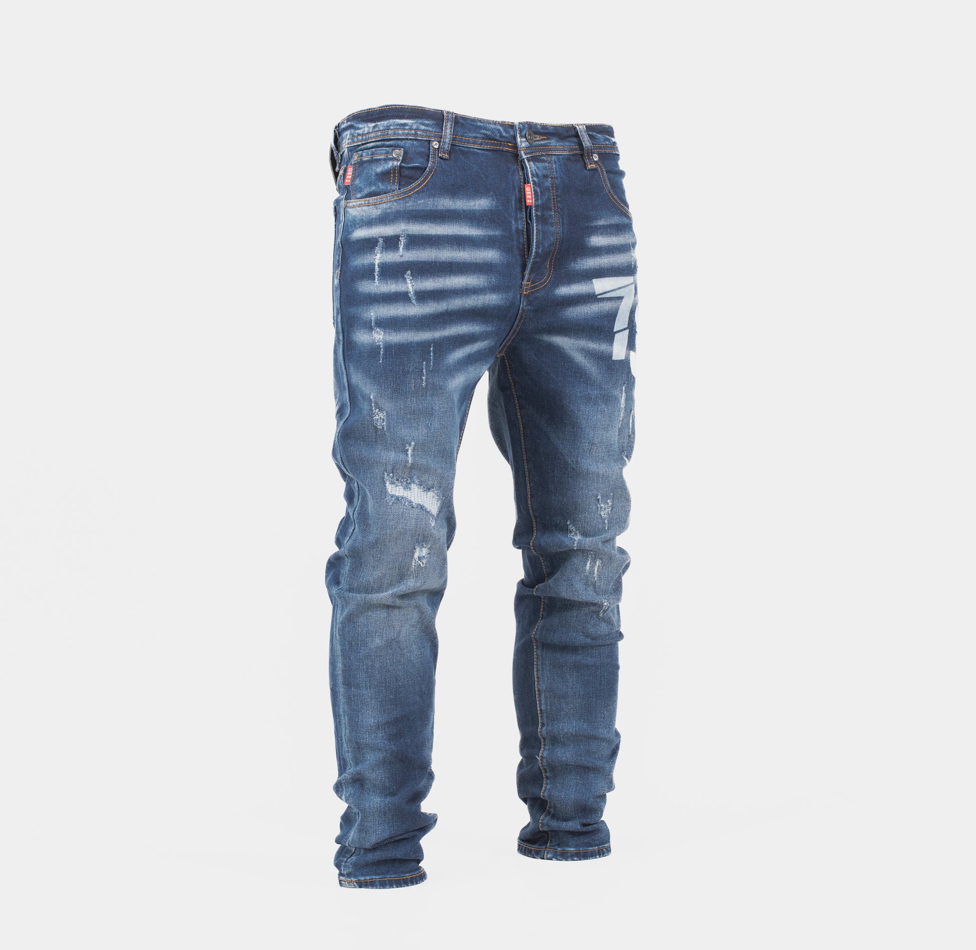Step up your streetwear game with the GEE2 Distressed “79” Graphic Slim Fit Denim Jeans. Designed for those who own their style, these jeans feature heavy fade detailing, bold thigh graphics, and urban distress accents for a raw, edgy finish. Available in both dark wash and light wash options — perfect for versatile fits year-round.