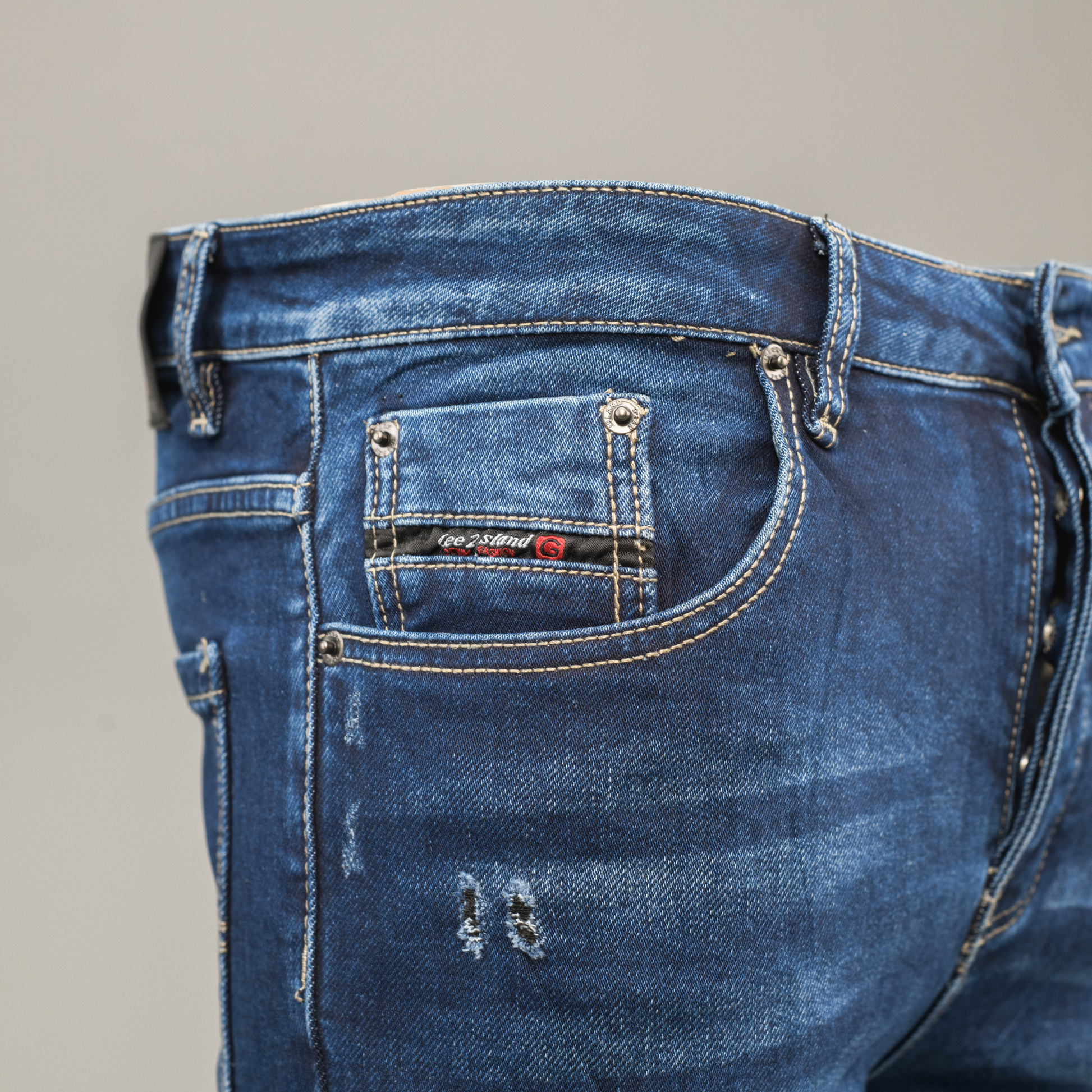 Level up your denim game with the Gee2 Island FS06-2 Distressed Denim Jeans. Designed for the trendsetters, these jeans feature: