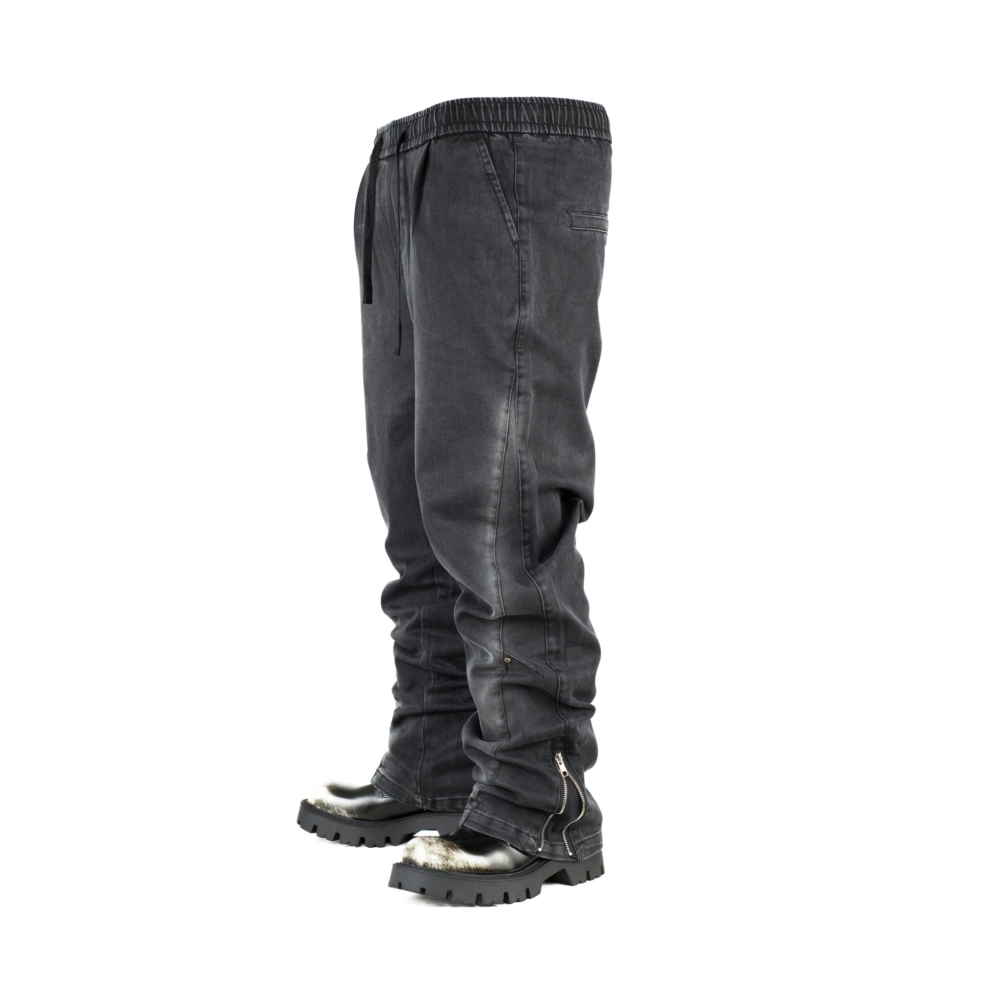 Dark Washed Denim Joggers with Ankle Zipper