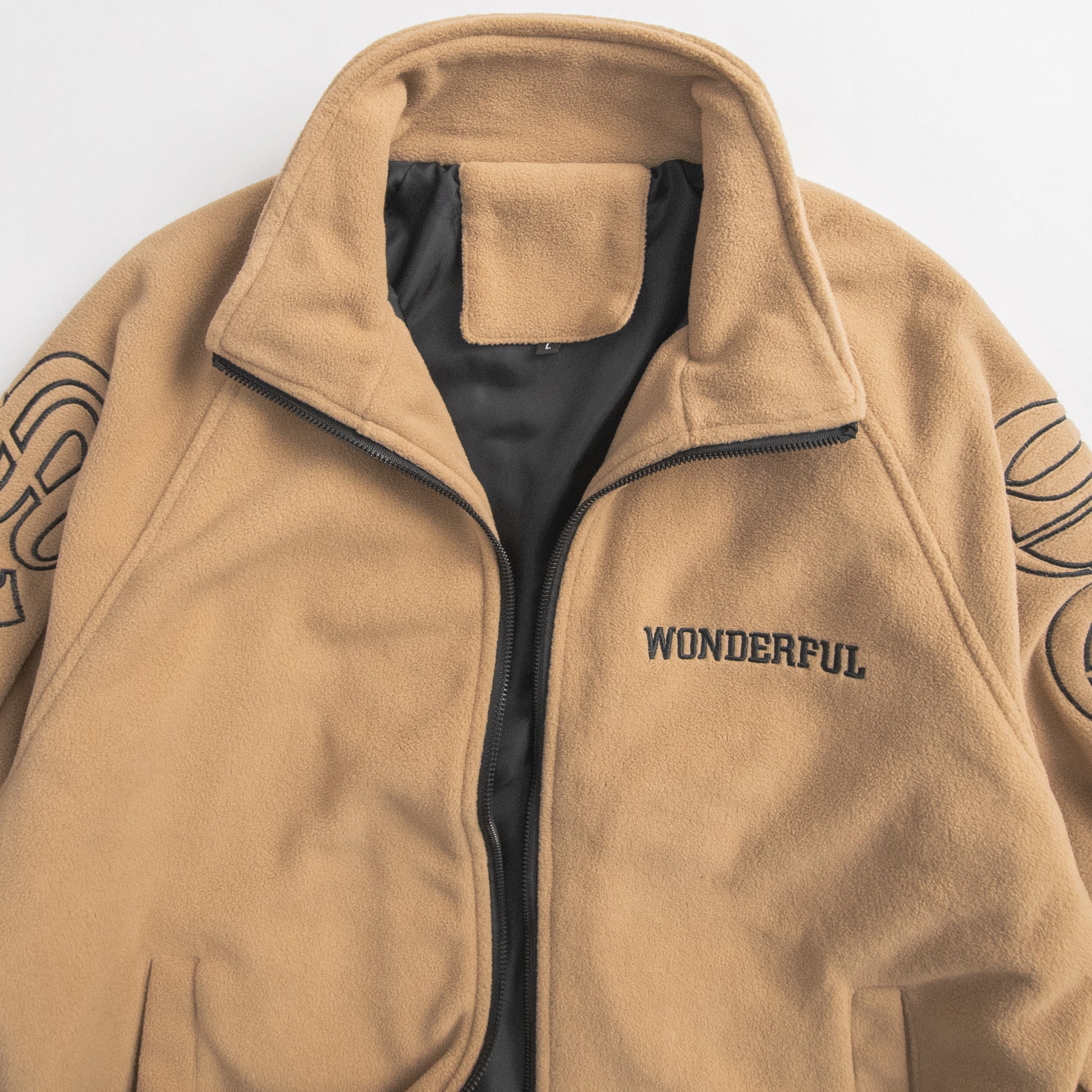 Retro Full-Zip fleece Jacket, “Texas” Chrome art embroidered solid colour poly fleece in a relaxed, boxy fit featuring full zip closure, elasticised gathered cuffs and hem.