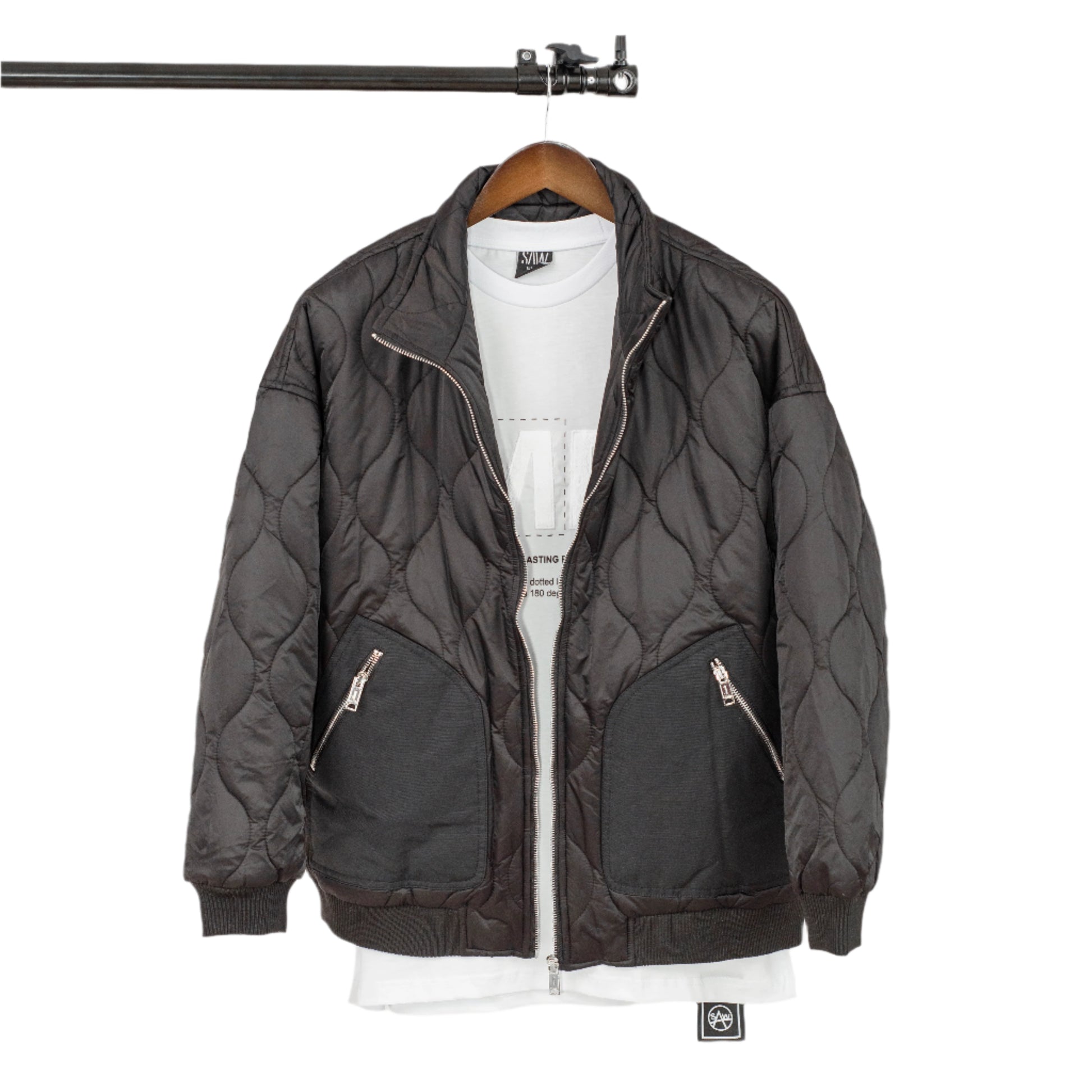 Unisex Bomber Varsity Diamond Quilted Full Zip Jacket.