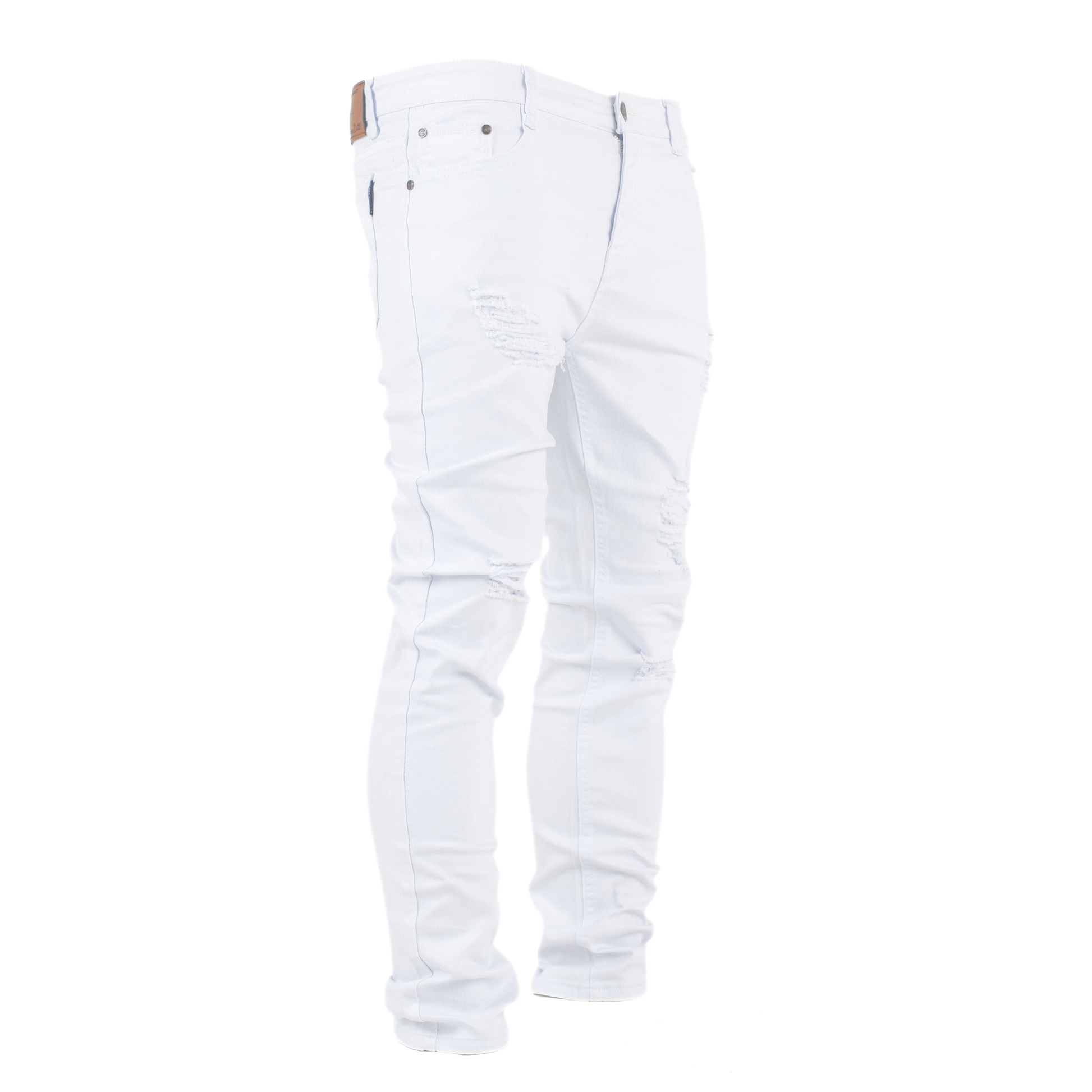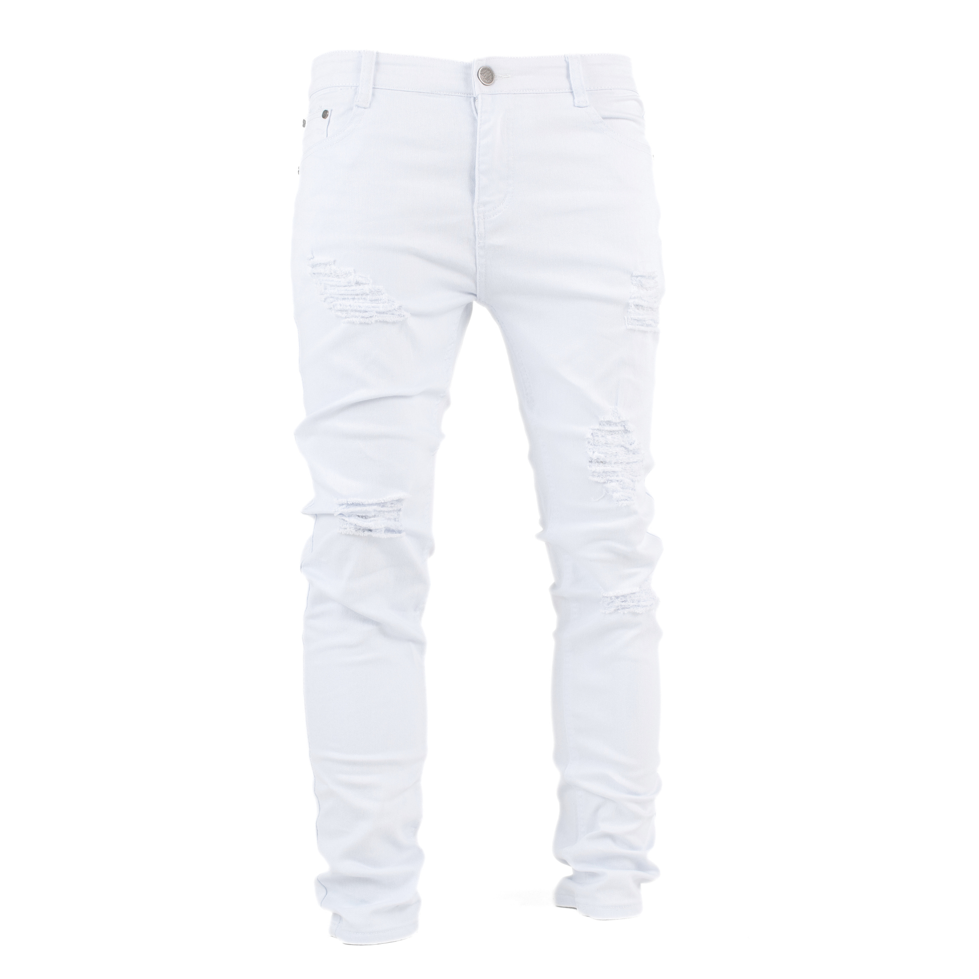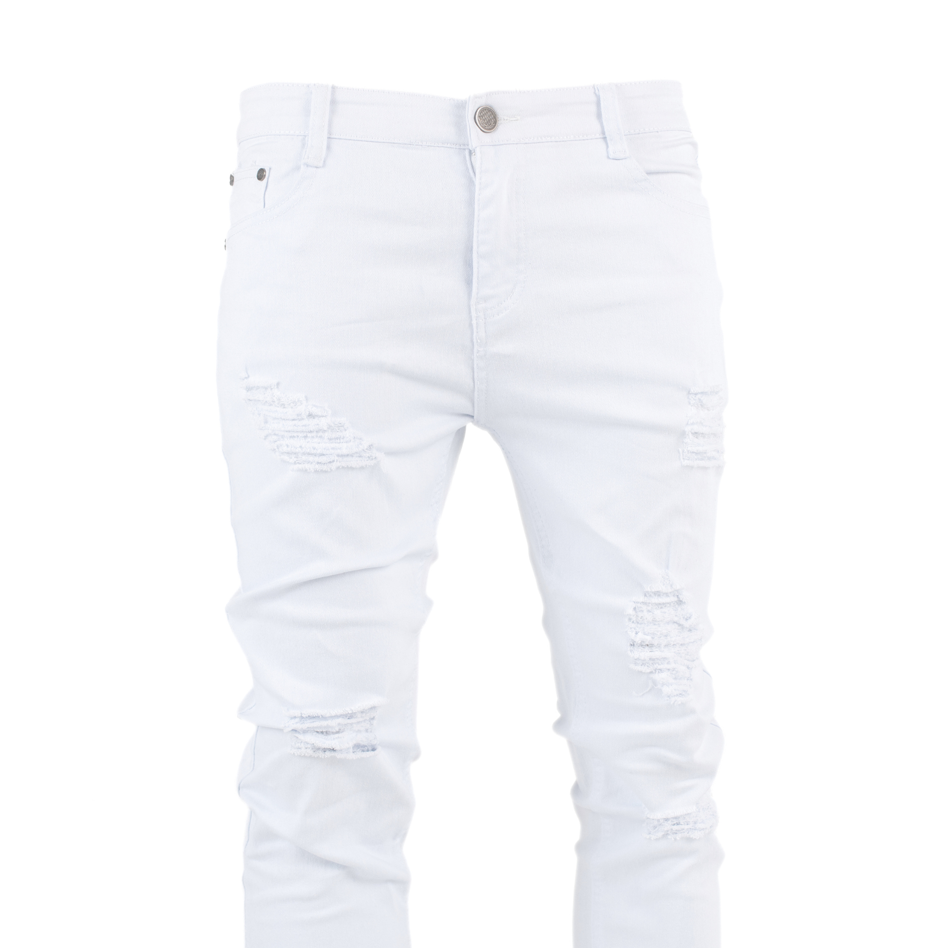 Step into a crisp, statement look with the Pure Ice White Distressed Skinny Denim. Crafted in a clean white wash, this jean delivers a sharp street-ready aesthetic with subtle ripped distressing for an edge that never tries too hard.