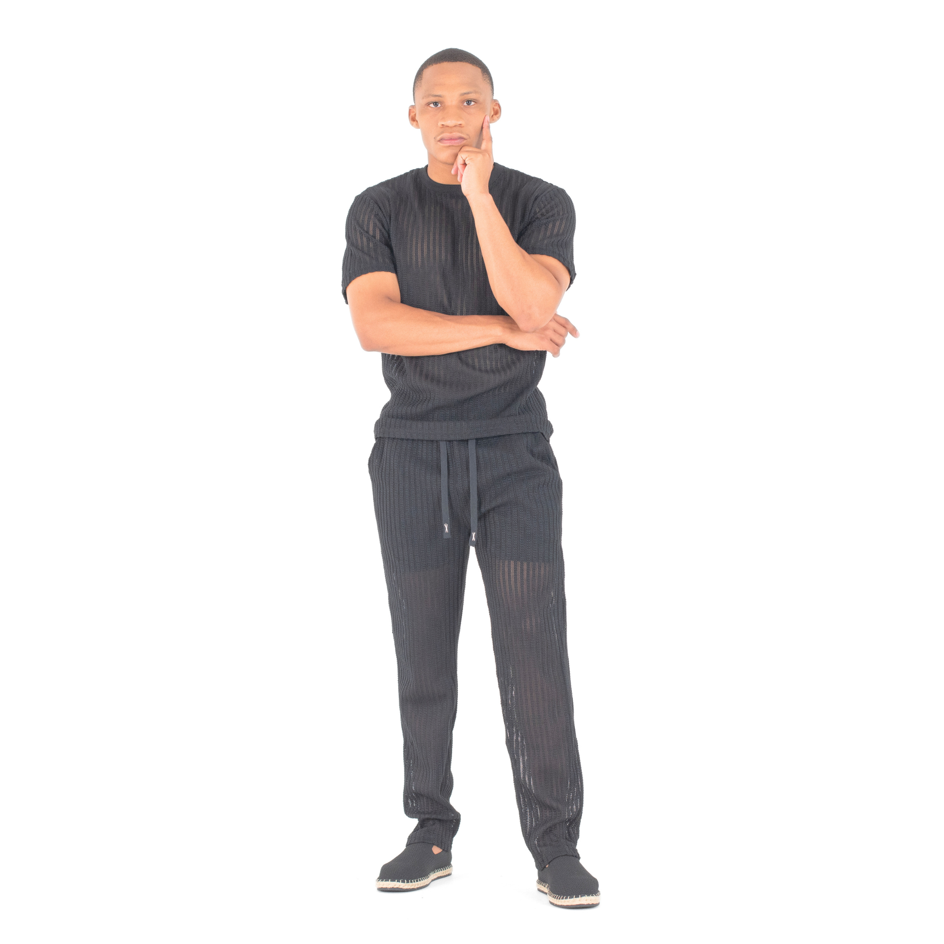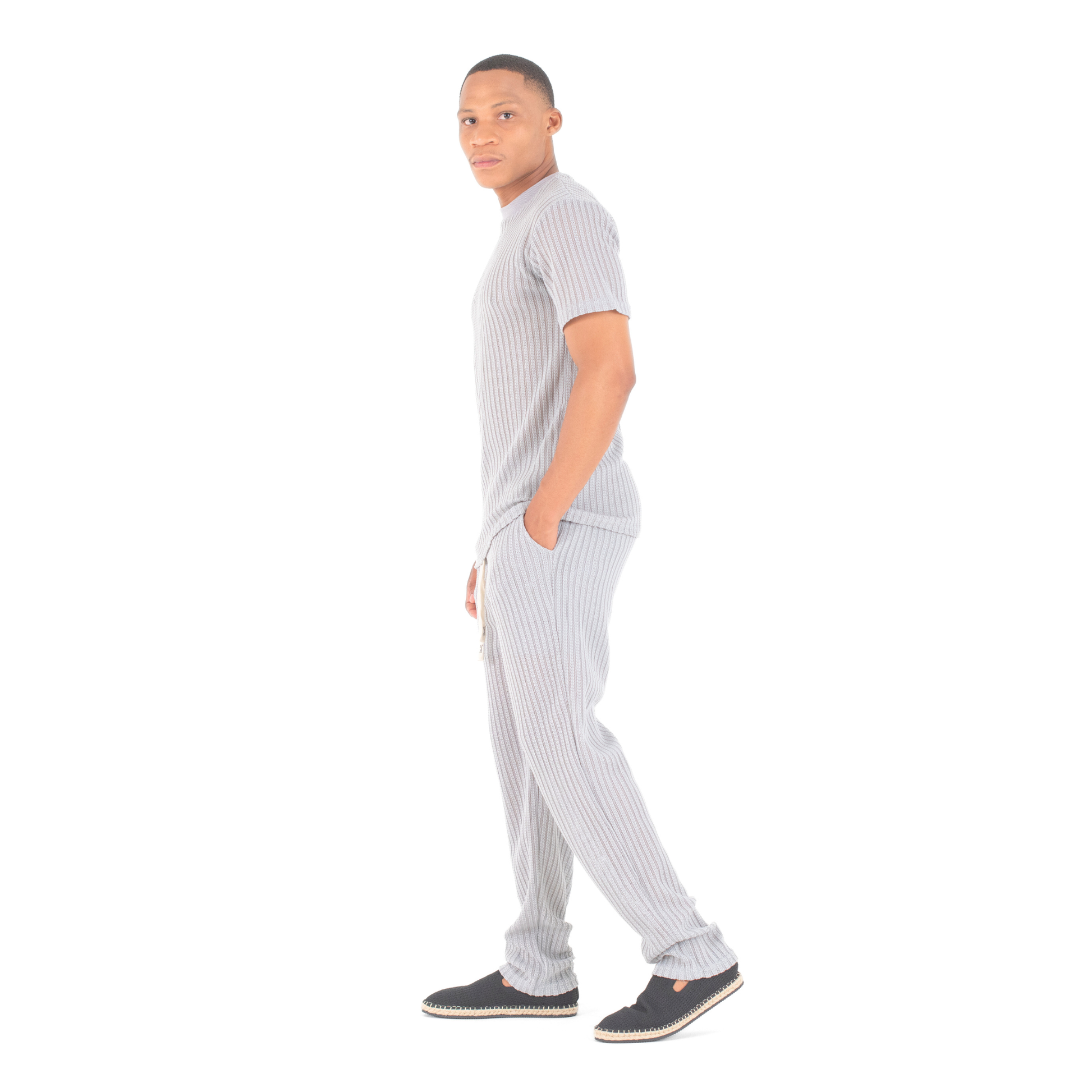 Redefine relaxed streetwear with the Ribbed Lounge Knit Set — a minimalist two-piece that blends comfort, texture, and everyday edge. Designed from a lightweight ribbed knit fabric, this set offers a sleek, breathable feel while maintaining structure and shape. The short-sleeve top features a clean crew neckline, and the matching jogger-style pants come with an adjustable drawstring waist and stacked cuffed hems for that laid-back yet tailored finish.