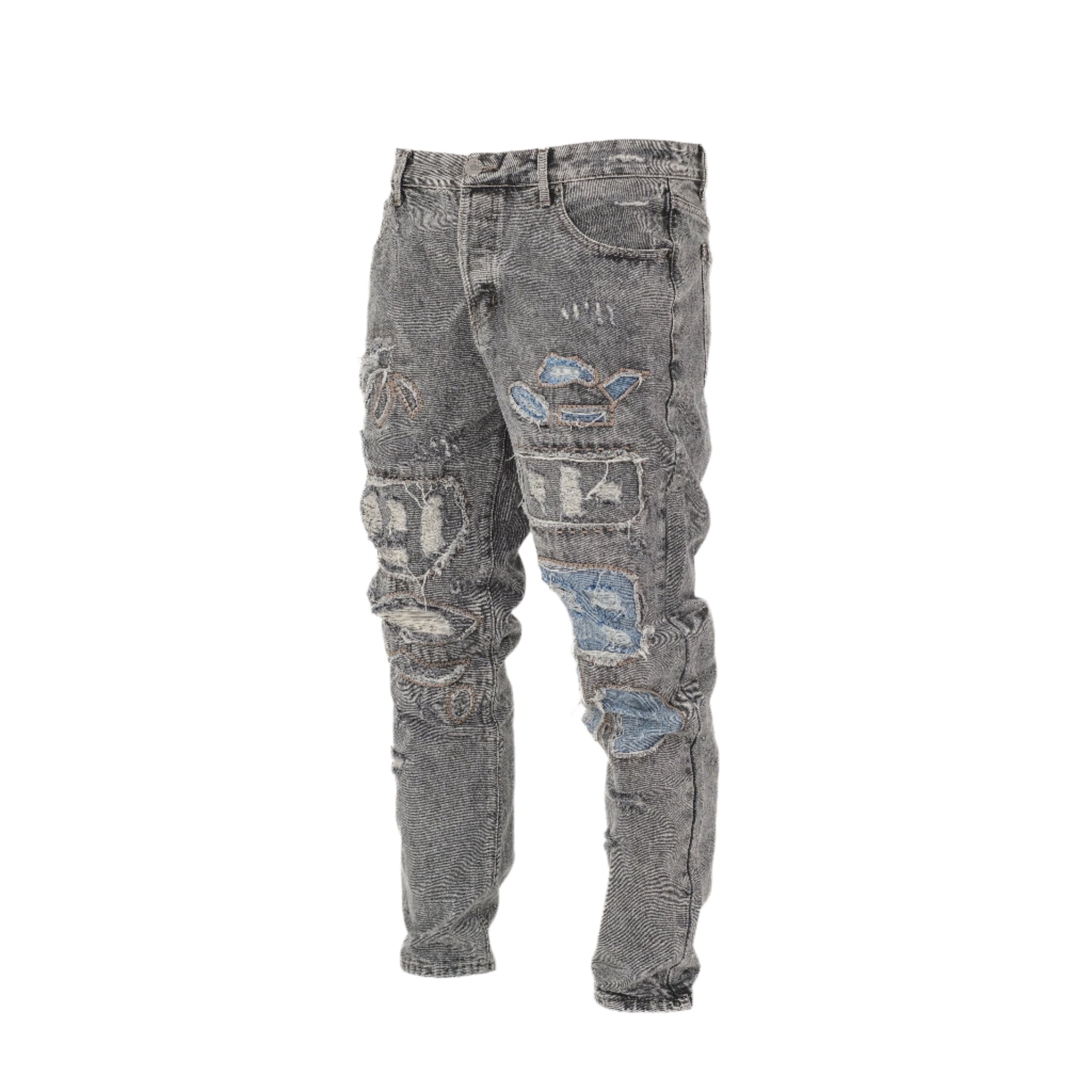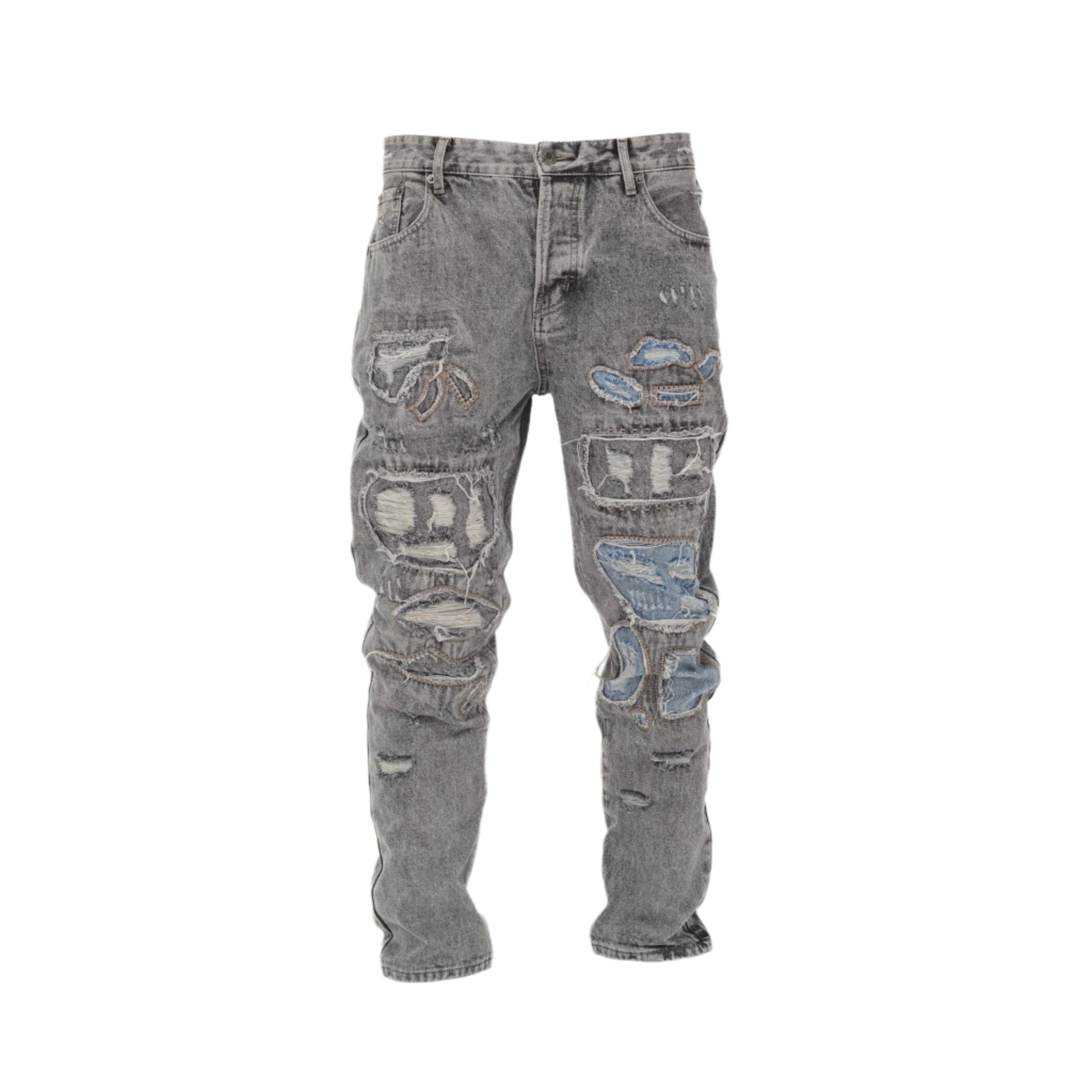 Men Vintage Distressed Ripped Straight Cut Non Stretch Denim Jeans.