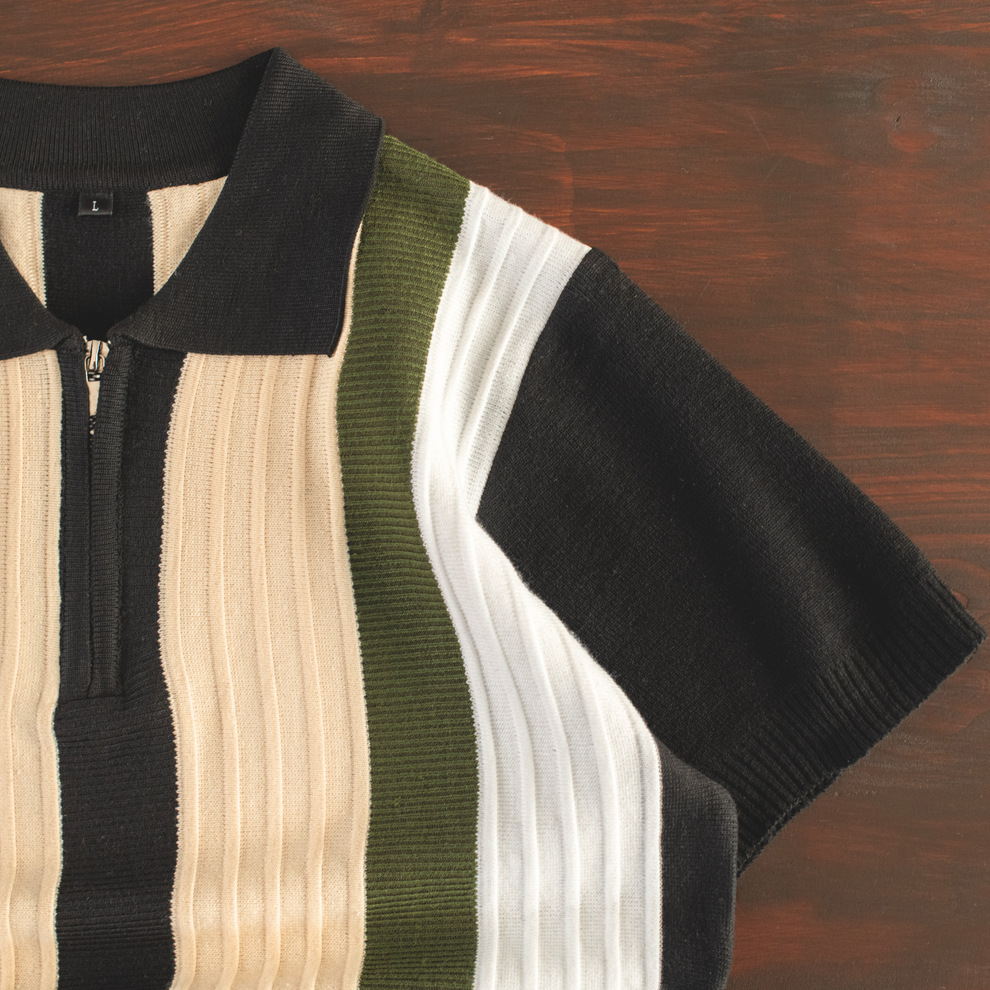 The Heritage Stripe Knit Zip Polo blends classic tailoring with modern street influence. Designed with bold vertical ribbed panels and a structured zip-neck collar, this piece delivers a refined silhouette while keeping everyday comfort at the forefront.